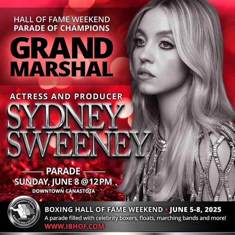 CANASTOTA, NY –APRIL 9, 2025 - The International Boxing Hall of Fame announced today that the 2025 Boxing Hall of Fame Weekend Parade of Champions scheduled for Sunday, June 8th at 12 noon will be led by actress and producer Sydney Sweeney.