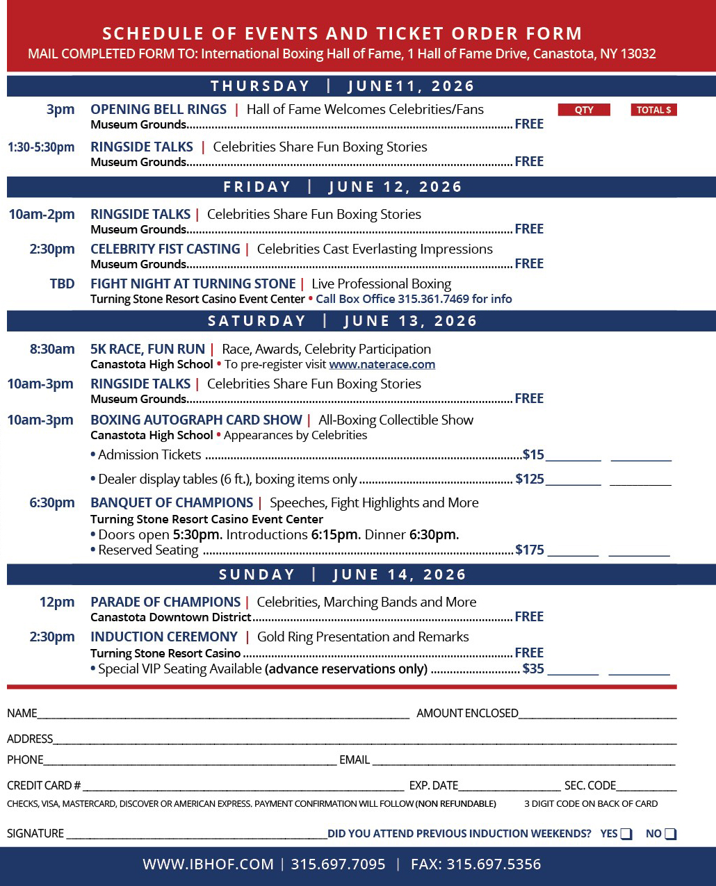 Boxing Hall of Fame Induction Weekend - June 11-14, 2026